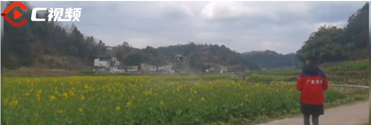 2月23日,绵阳市三台县景福镇白沙湾村,1200亩油菜已经扬花,田间点缀着点点金黄。趁着天气放晴,当天下午,11台植保无人机飞入田间,开始播撒农药。