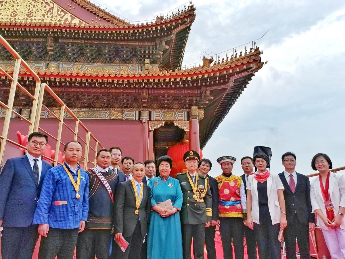 洛古有格(左3)和参加庆祝大会代表合影(受访者提供)