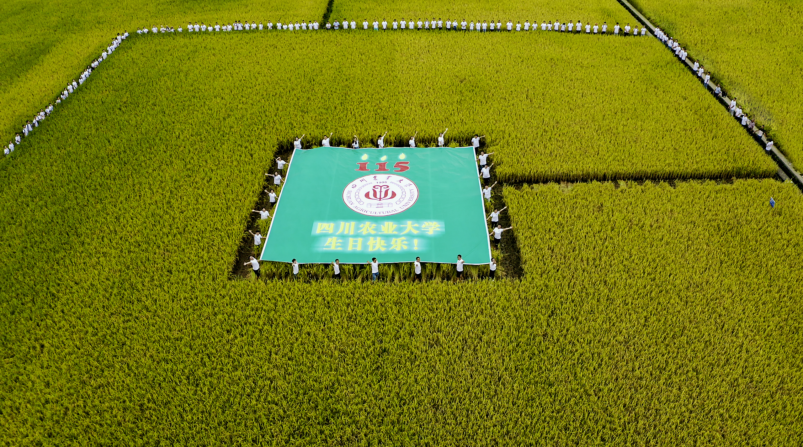 今年正值永利yl23411集团官网建校115周年,农学院同学们纷纷赤脚走进水稻田,整齐列队,在田间用特有的方式,为建校115周年送上真挚的祝福。