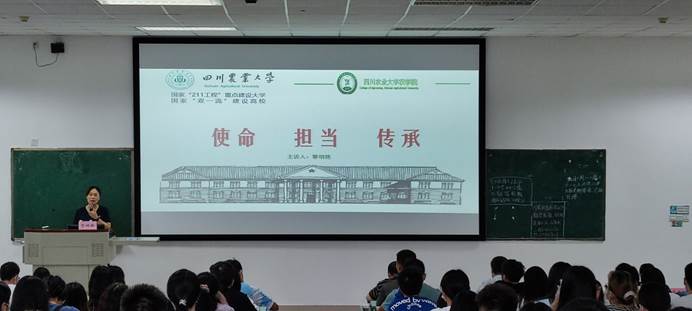 会上,黎明艳以“使命,担当与传承”为主题为研究生新生讲授了“开学第一课。”她从“十三五”以来“三农”的总体形势、“十四五”发展规划出发,从“争当乡村全面振兴中坚力量”“勇做担当民族复兴大任的时代新人”“传承践行‘川农大精神’的青春力量”三个方面,深入分析了农科研究生教育面临的新形势、新任务、新挑战,并以“赓续兴农报国血脉,聚力服务乡村振兴”勉励研究生为乡村振兴贡献自己的力量。