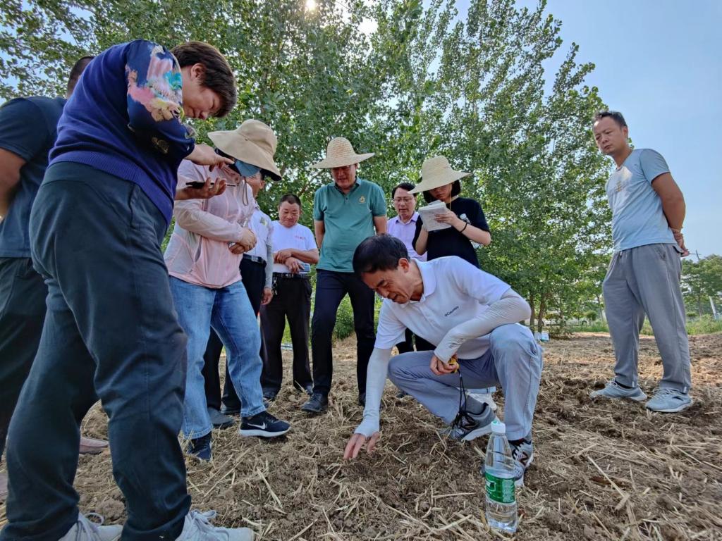 杨文钰(右二)在江苏省新沂市对种植农户进行现场培训。