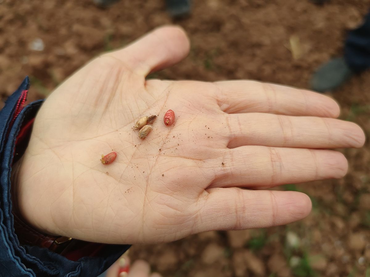 小麦种子因干旱造成的缺水及未发芽。