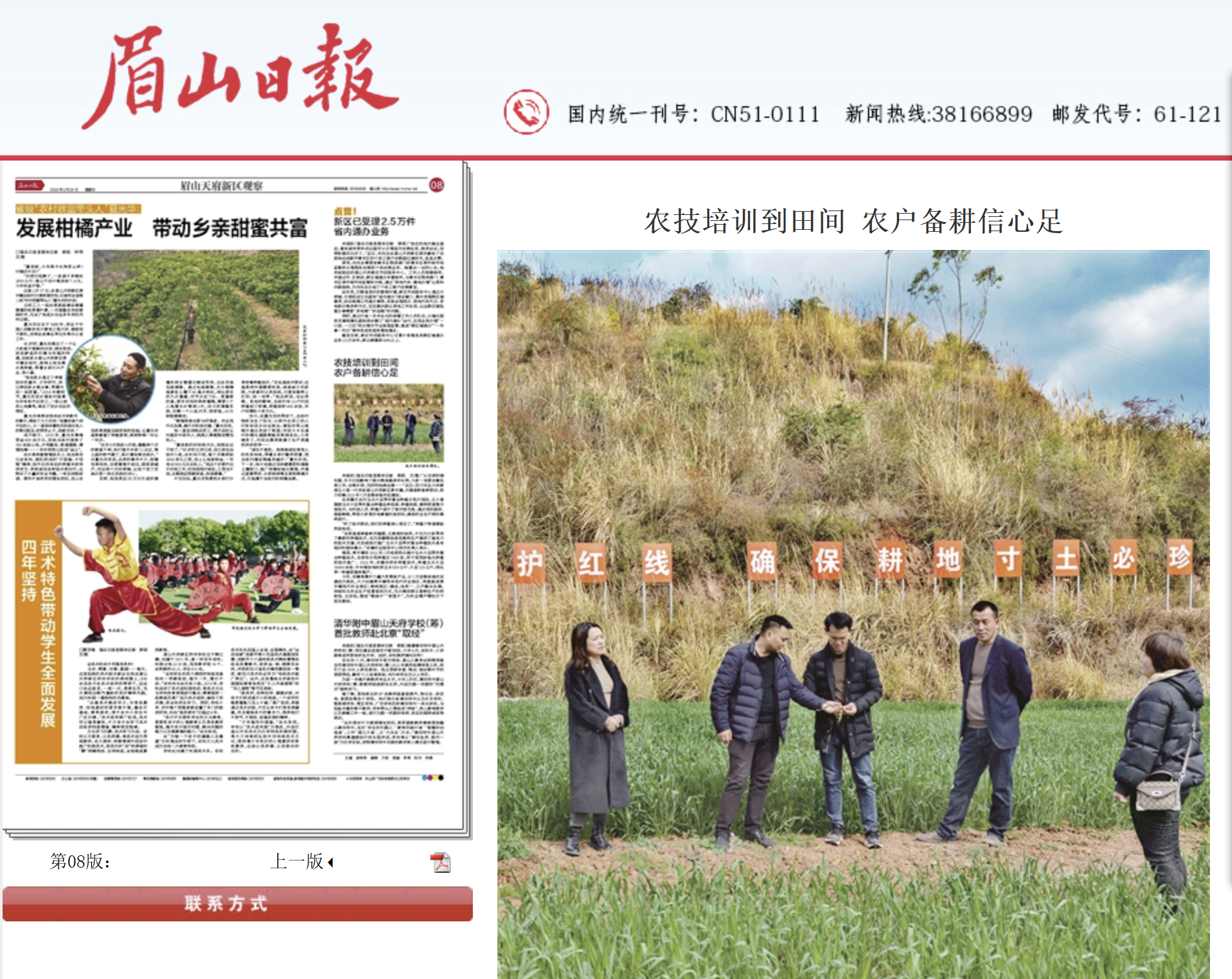 本报讯(眉山日报全媒体记者 熊莉 文/图)“从目前的情况看,冬干已经影响了部分粮食蔬菜的长势,大家一定要注意抗旱工作,合理补肥、及时防治病虫害……”近日,永利yl23411集团官网教授王小春一行来到眉山天府新区贵平镇,开展春耕备耕培训,助力该镇2023年1万亩高标准农田建设。