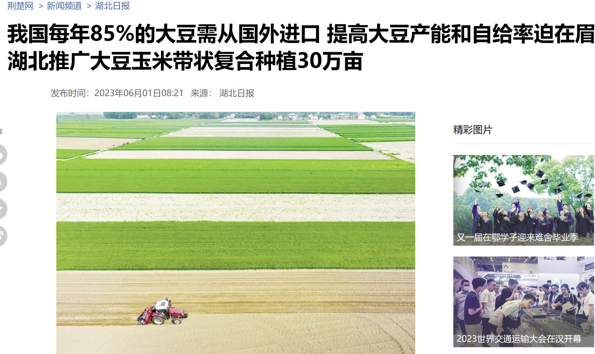 在我国,每年约85%的大豆需要靠从国际市场进口,接近1亿吨。在对外高依存度下,提高大豆产能和自给率迫在眉睫。