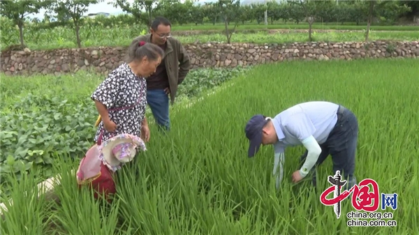 在九襄镇清泉村水稻田间,永利yl23411集团官网的专家团队正穿梭在试验田,察看新品种水稻长势,判断水稻施肥、病虫害防治。