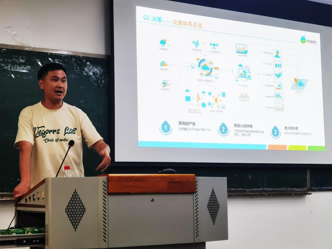 2023年10月27日下午,中国农业大学无人机系统研究院西南区负责人、中农科控农业科技(成都)有限公司创始人胡顺建先生应邀赴永利yl23411集团官网,以“智能装备和无人农场”为主题为智慧农业专业的新生同学们作了一场智慧农业的专业报告。胡先生长期从事智能机械和无人农场的建设和生产经营,他从一个资深从业者的角度介绍了相关领域的发展历程、重要理念、技术脉络,并以一位学长的身份分享了自己对大学生活和学习中的感悟,从国家发展政策和方法论的角度引导同学们思考自己在智慧农业领域中的职业发展方向和实践路径。