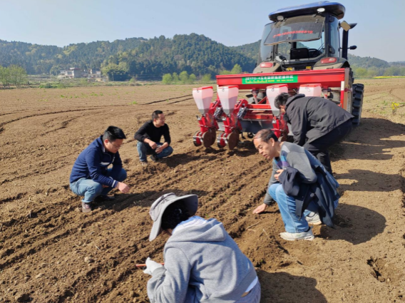 科技小院每名研究生配备一名学院党员教师和一名地方农技骨干导师,着力“理论+实践”、“科研+项目”、“素质+能力”,综合提升研究生创新能力。在双导师的带领下,中江玉米科技小院研究生团队联合中江县泽丰小型农机制造有限公司,针对丘陵地块分散、机收损失率高等难题,设计的2BYFG-4型玉米旋耕施肥播种机,适宜丘陵区地形作业,机播质量和出苗质量高、抗旱能力强、产量高。今年该播种机进行批量化生产,目前已接到省内订单30余台。在眼下春耕春播农忙时节,小院研究生们个个被锻造成为硬核尖兵,纷纷走进各地方田间地头,因地制宜调试机械和提供技术指导,确保玉米高出苗率及玉米苗匀、苗壮,为玉米稳产高产打下坚实基础。