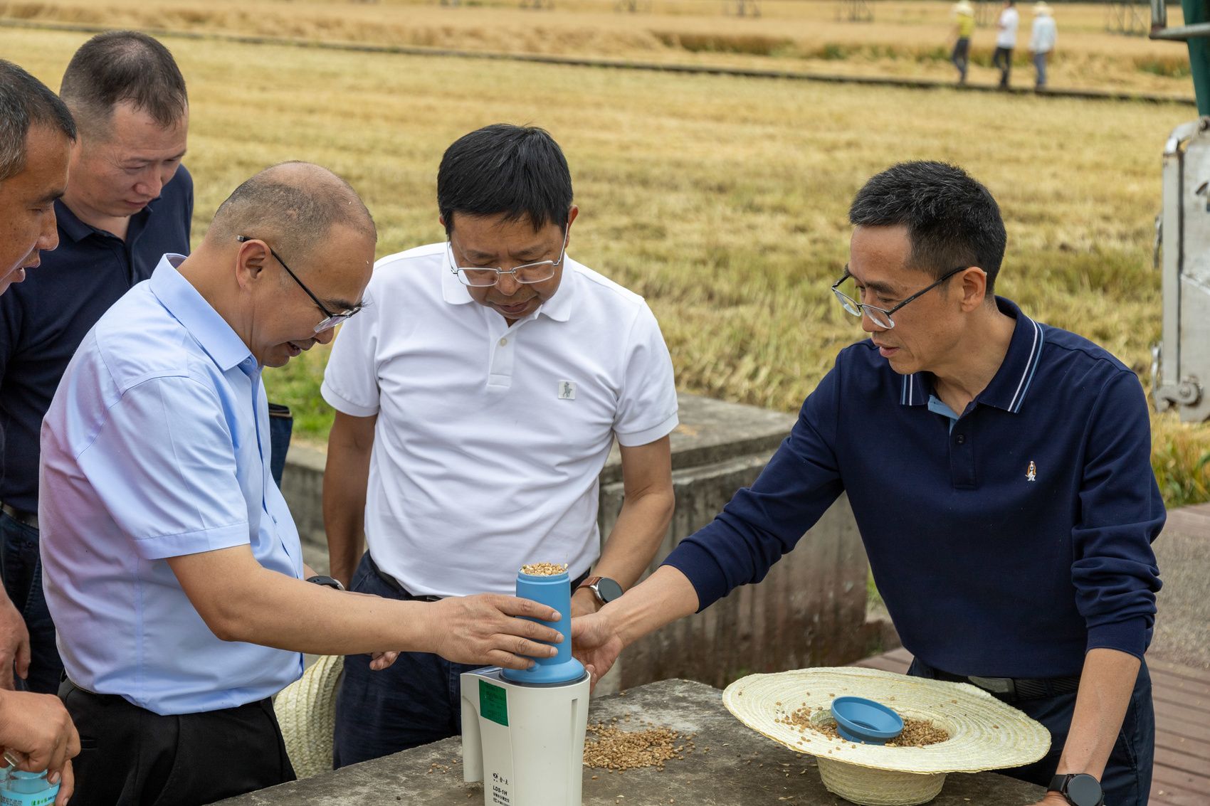 专家组成员正在测量小麦含水量。崇州市委宣传部供图