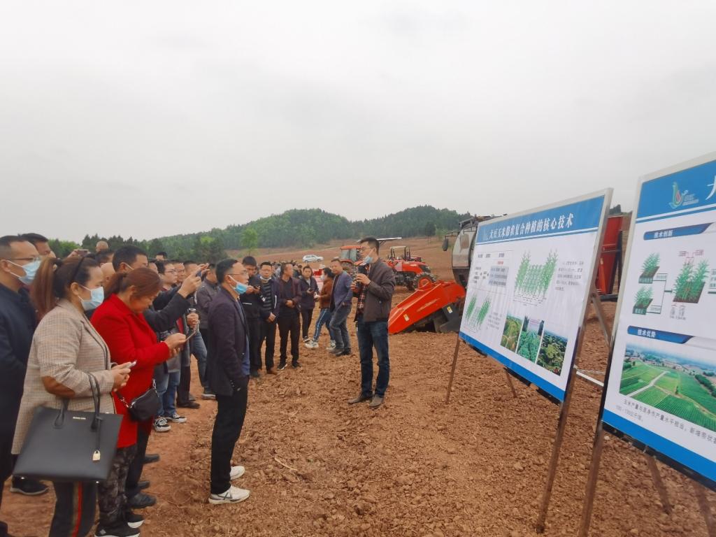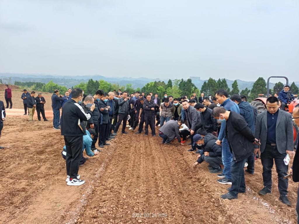 德阳市农业农村局副局长许万金、中江县农业农村局局长许世顺及总农艺师陈正龙等组织和带领各区县农技推广人员、部分种植大户参加了春耕生产现场会暨大豆玉米带状复合种植技术培训会。