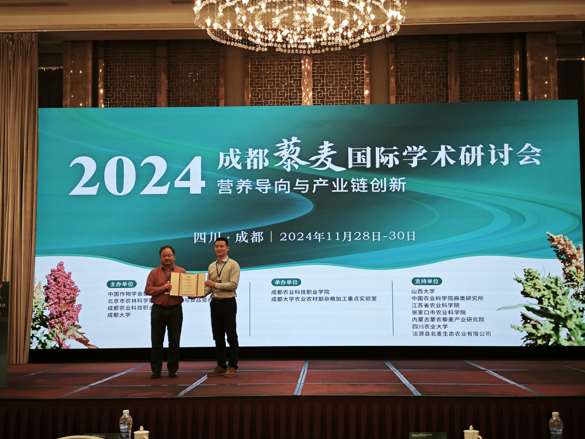农学院冯宗云教授在大会上作了题为“四川藜麦生产现状及发展趋势”的学术报告。其指导的研究生曹媛在论坛上作了题为“藜麦不同时期总黄酮含量及其抗氧化活性”的学术报告,并荣获优秀报告奖。