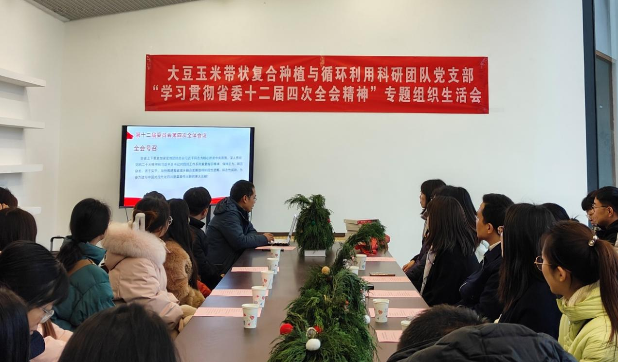 高雪松强调,党建组织工作要避免“上热中温下冷“,要将党的任务落实到实处,将推广工作下沉到一线,落实到基层。他鼓励党支部同志们继续做好本职工作,继续将大豆玉米带状复合种植模式推广种植到更多合适的田地,要实实在在地解决农户们的问题。同时,针对党支部各个党员在科研、学习、生活中发生的问题与遇到的困难共同讨论解决方案。高雪松表示党支部既要为同志个人的发展下功夫,也要吸纳更多优秀的教师、学生加入大豆玉米带状复合种植与循环利用科研团队党支部。