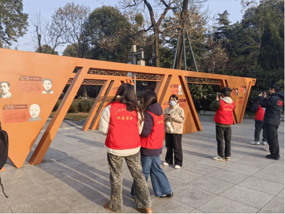 随后,成员们在讲解员的带领下认真聆听讲解。曙光洒在青铜色的花岗岩浮雕《晨曦》上,讲解员的指尖划过斑驳石面,介绍着36位烈士的事迹:留法归来的杨伯恺烈士,狱中仍惦念着土地的未来;农民运动于渊,1927年带领万人夺回被强占的耕地。在浮雕北侧的殉难时间轴前,所有人都屏息凝神,聆听那段沉重的历史——1949年12月7日,36位志士倒在黎明前的黑暗中,用生命迎接曙光。