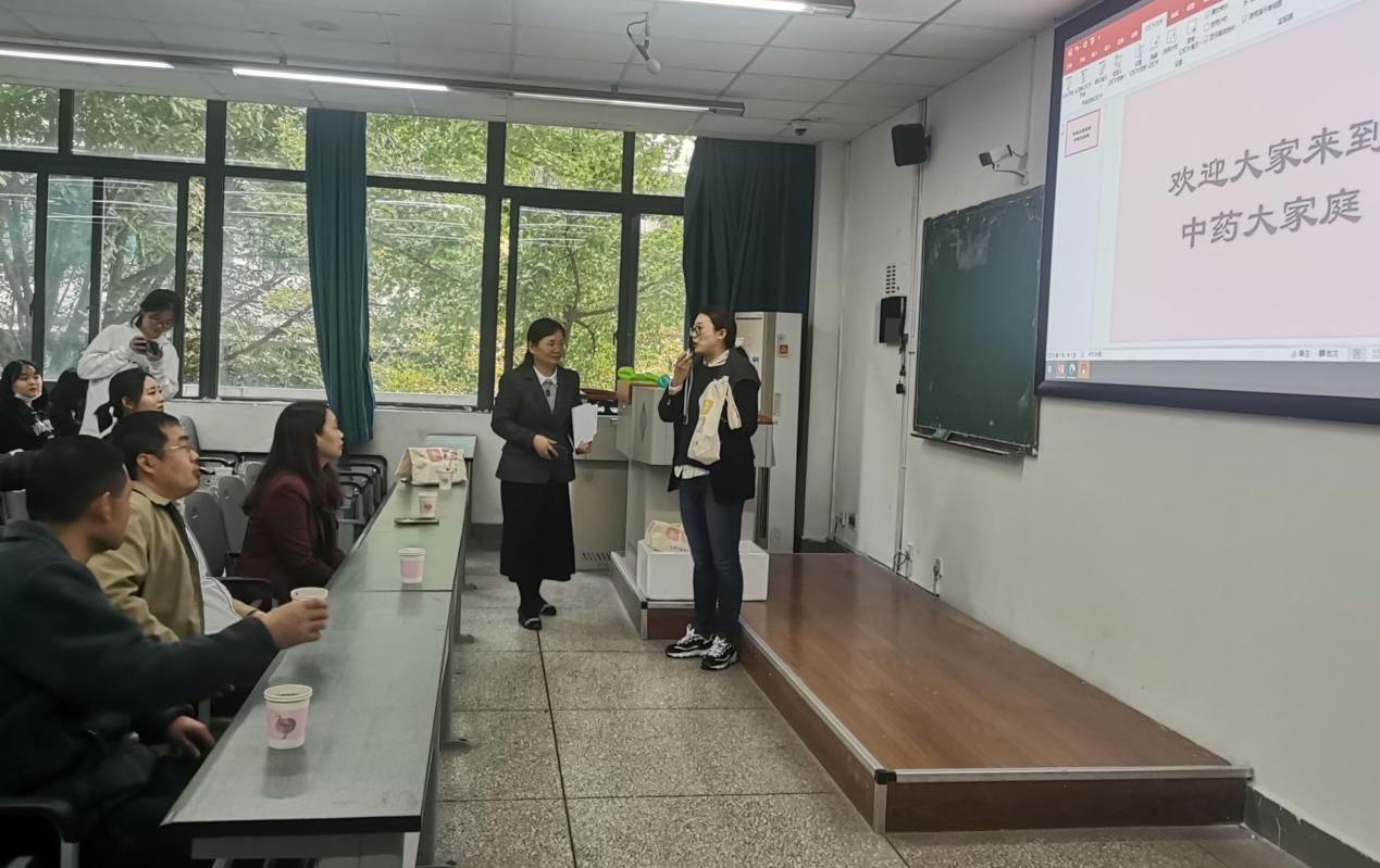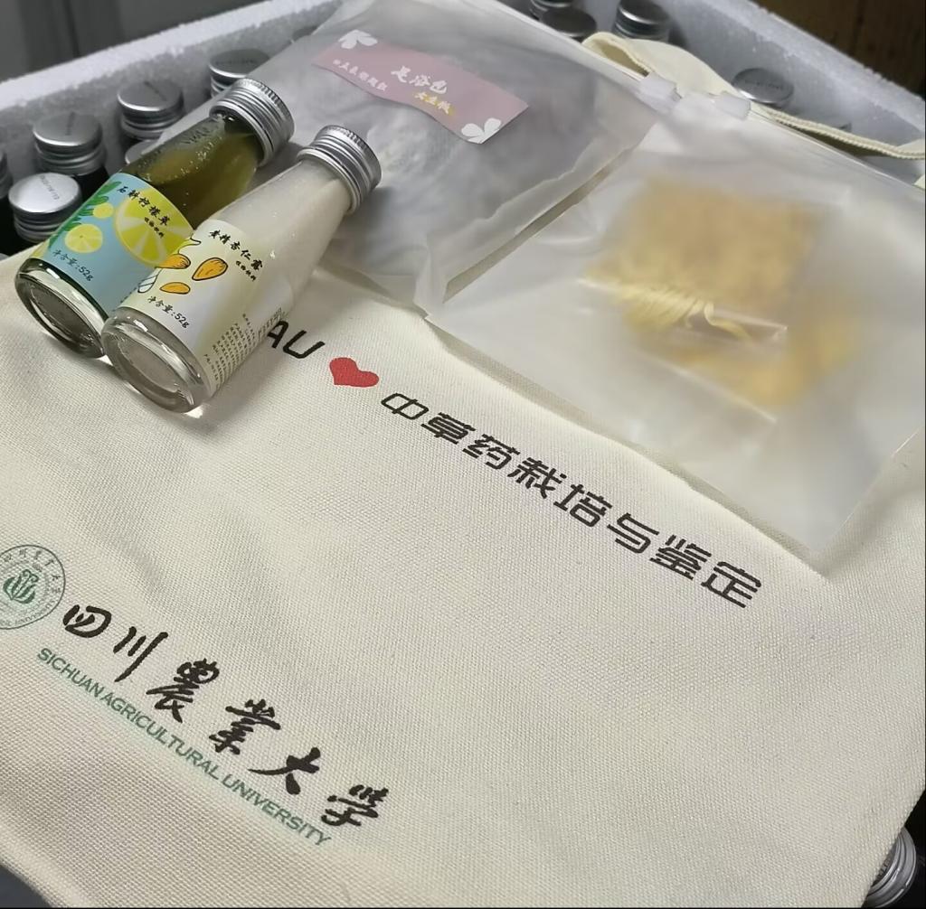活动最后,老师们为新生送上精心准备的专业礼物——石斛柠檬萃、黄精杏仁露、中药材泡脚包、金丝黄菊以及印有中药专业标志的定制帆布包。陈稷老师为大家详细讲解了两款由中药专业老师自主研制的中药饮品的制作过程及功效。精心准备的礼物寄托了老师们的殷切期盼,“希望新生都能爱上我们的专业,在未来的专业学习中有所收获。”吴卫说道。