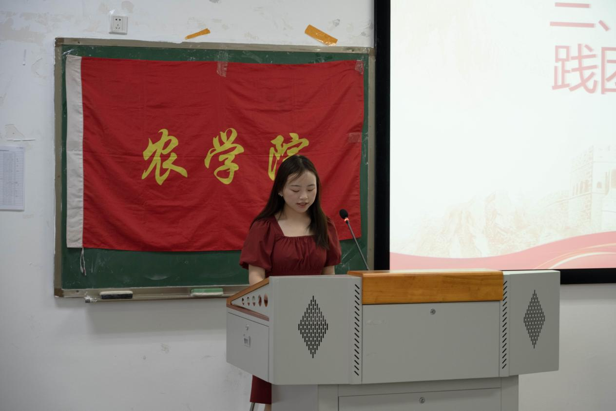 大会伊始,农学院团委实践部部长吴宇雪从实践内容、参与形式、评优评奖以及实践流程几个方面对本次暑期社会实践进行了详细介绍。她强调,此次社会实践专项内容丰富,除往年社会实践内容外,今年还新增大学生社区服务专项和乡村振兴青年先锋实践专项等项目,请同学们重点关注和积极参与。