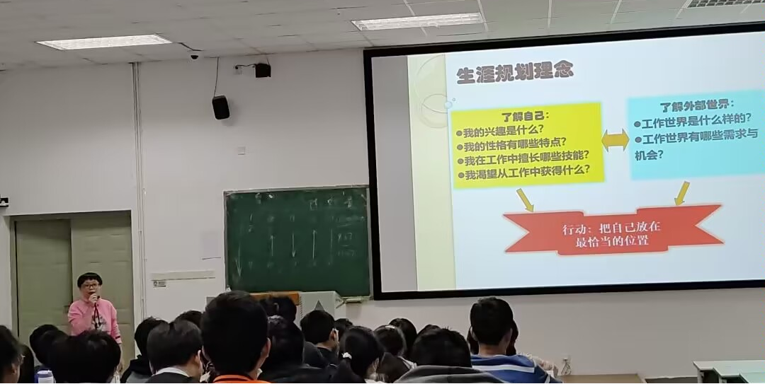 进行职业规划、掌握人生方向,是新干事自我提升的独家方法。第三次培训,刘昱麟为新干事们带来有关职业规划的课程,旨在鼓励同学们做自己人生的掌舵者。“职业规划关系着大学生的就业方向,更与大学生的未来发展有密切的关系。”她向同学们介绍了“系统职业生涯规划法”:觉知与承诺、认识自己、认识工作世界、决策、行动和再评估。职业规划需要“了解自己”,了解自己喜欢什么、自己有什么性格特点、工作擅长哪些技能;需要“了解世界”,工作世界是怎么样的、有哪些需求机会。刘昱麟希望,通过这样的规划,能让新干事们的未来更加明晰。