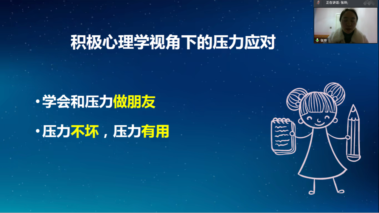为提高当代大学生心理素质、有效释放压力,12月9日,农学院特邀学校心理健康教育中心专职老师、国家二级心理咨询师张玲为同学们带来“积极心理学视角下的压力应对”主题线上讲座。党委办公室副主任沈丽淘主持活动。