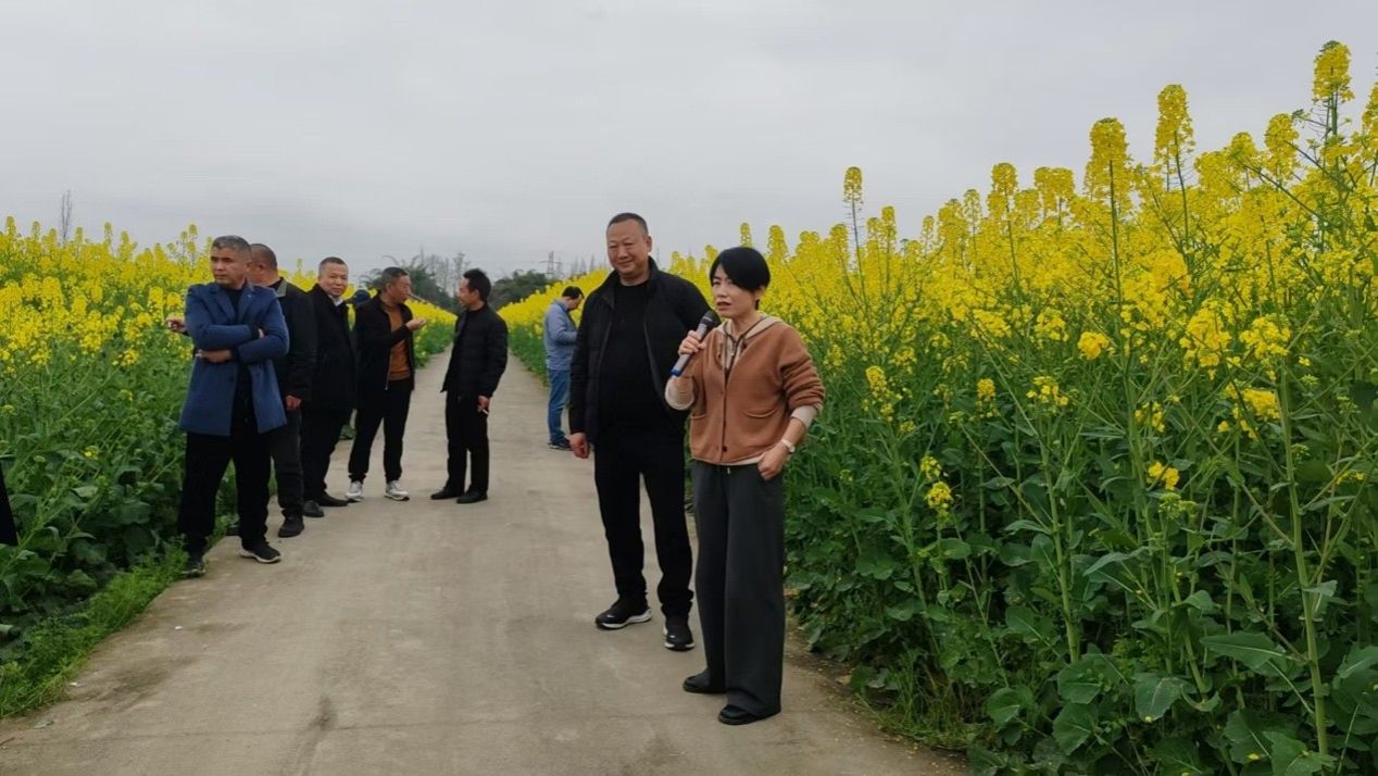 第二站团队一行来到崇州市燎原乡种粮大户杜刚的油菜地。飞机播种的油菜密密实实,但茎秆粗壮,高度一致,整齐划一的油菜花正在竞相绽放。预示着高产的长相,让观摩人员赞叹不绝。杜刚介绍了他的田间管理秘诀,吴永成总结了均衡生长对于高产创建的重要性,就油菜田前期杂草防治、肥料管理、近期田间管理要点与大户们进行了交流探讨。