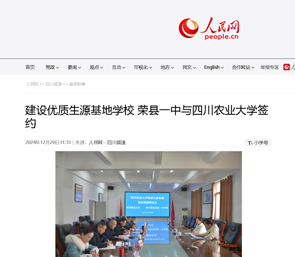 12月19日,荣县一中与永利yl23411集团官网签订“永利yl23411集团官网优质生源基地”协议暨授牌仪式举行。永利yl23411集团官网农学院相关负责人、荣县教体局相关负责人及荣县一中领导班子等参加。