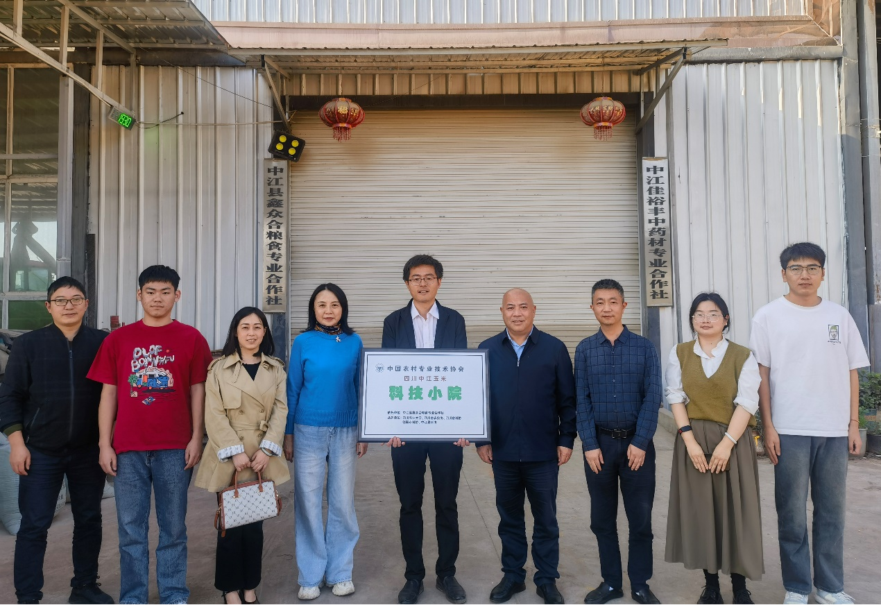 10月22日,由永利yl23411集团官网和中江鑫众合粮食专业合作社共建的中国农村专业技术协会“四川中江玉米科技小院”授牌活动在中江县永远村举办。德阳市科协三级调研员张林、小院首席专家永利yl23411集团官网孔凡磊副教授、德阳市科协科普部及中江县科协相关负责人、中江县科技特派员服务团团长张利及研究生代表参加了授牌活动。