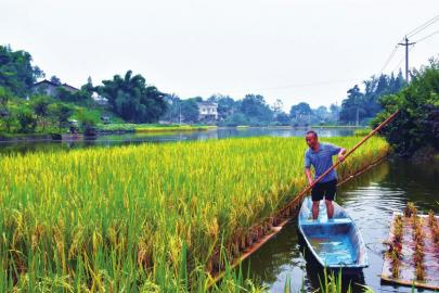 金秋九月,水稻又迎来收获的季节。与别的地方田间机收景象不同的是,眉山市丹棱县的部分村民却划着小船,来到鱼塘边收割水稻。近日,在丹棱县张场镇文武村2组,村民罗成泽的“水上稻田”迎来丰收,他和家人一道正忙着收割在鱼池里长大的浮稻。经测算,每亩浮稻产量可达330公斤。