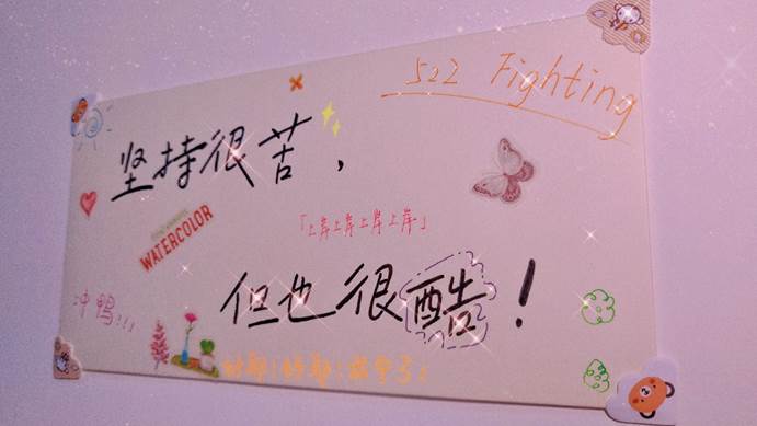 “坚持很苦,但也很酷!”522寝室五名女生集体“上岸”,在此之前的漫漫长路上,少不了中途互相的鼓励与打气。据悉,在平日的学习中,因怕相互影响,她们并没有选择集中在一起复习,而是在每天午休期间和睡觉前谈论各自的复习进度,把握好总体的复习进度与方向,形成对比,互相监督,防止某个人落下太多。她们彼此之间互相包容,共同进步。“考研期间其实大家都在图书馆等地方学习,寝室就是在一天的疲惫后给我们提供休息的场所。所以我们宿舍通过讨论制定了共同的寝室作息计划,就是为了大家都能有一个比较好的休息环境。”寝室长聂婉怡说道。