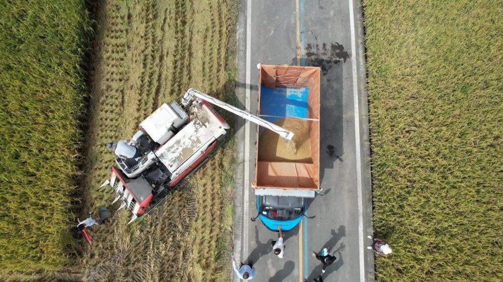 按照农业农村部超级稻测产方法,专家组随机选取三块田,采用收割机实收实测,每块田实收面积850平方米以上。收获稻谷经称重、去杂、测定水分,折算成标准水分产量,三块田测得稻谷亩产分别为792.4公斤、841.0公斤、795.4公斤,平均稻谷产量809.6公斤/亩。