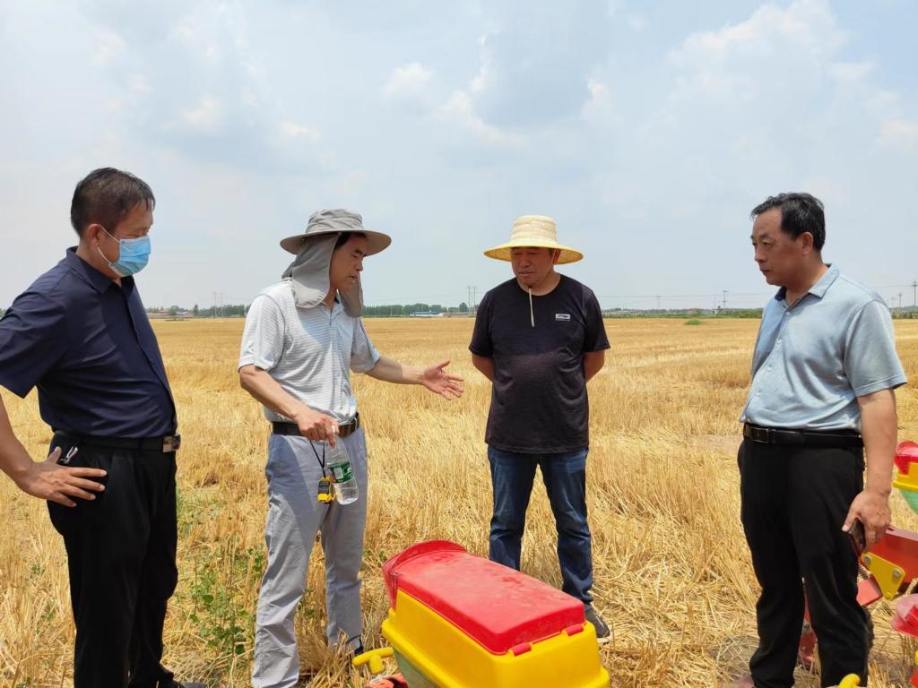 杨文钰(左二)在河北省衡水市景县指导大豆玉米播种。