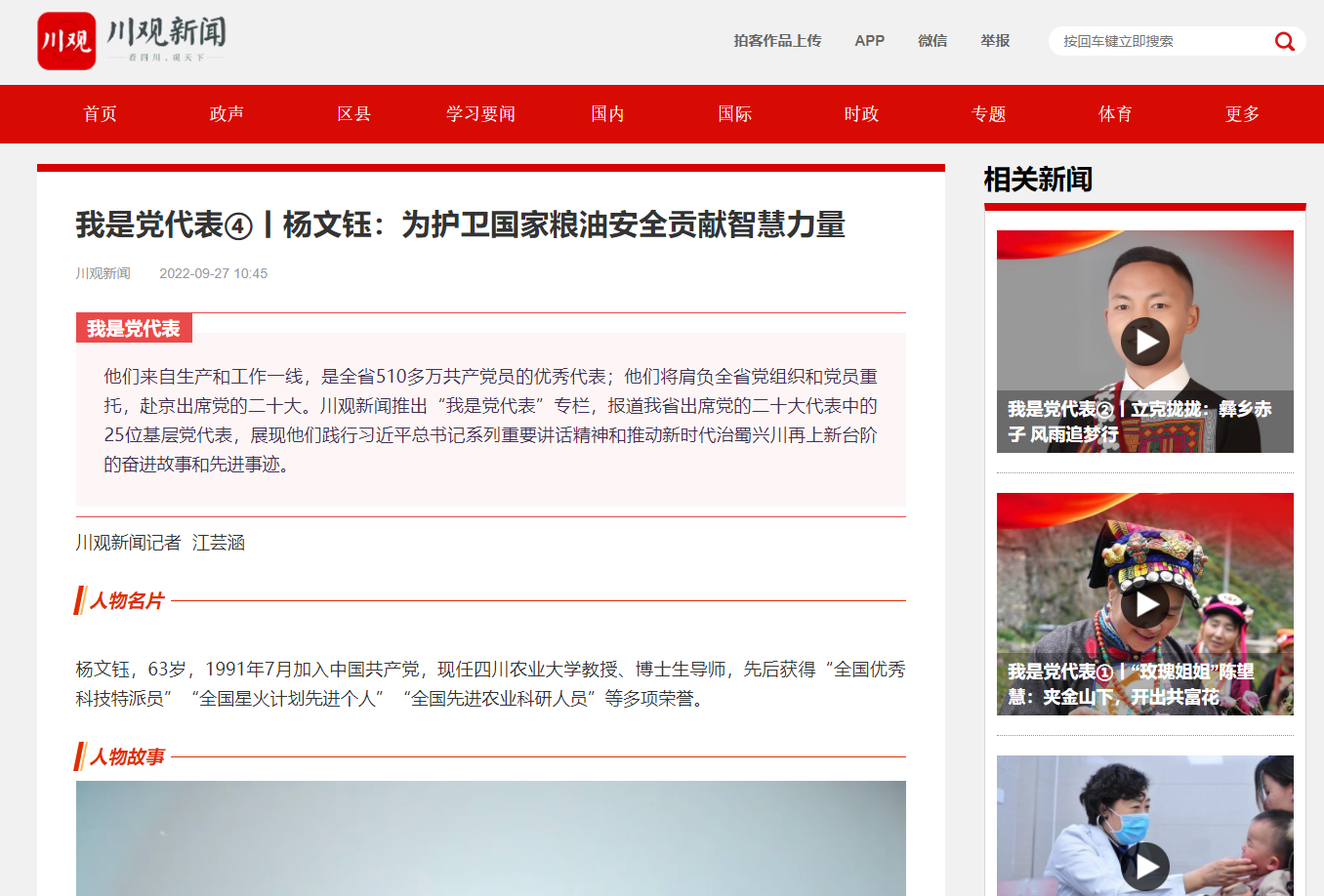 他们来自生产和工作一线,是全省510多万共产党员的优秀代表;他们将肩负全省党组织和党员重托,赴京出席党的二十大。川观新闻推出“我是党代表”专栏,报道我省出席党的二十大代表中的25位基层党代表,展现他们践行习近平总书记系列重要讲话精神和推动新时代治蜀兴川再上新台阶的奋进故事和先进事迹。