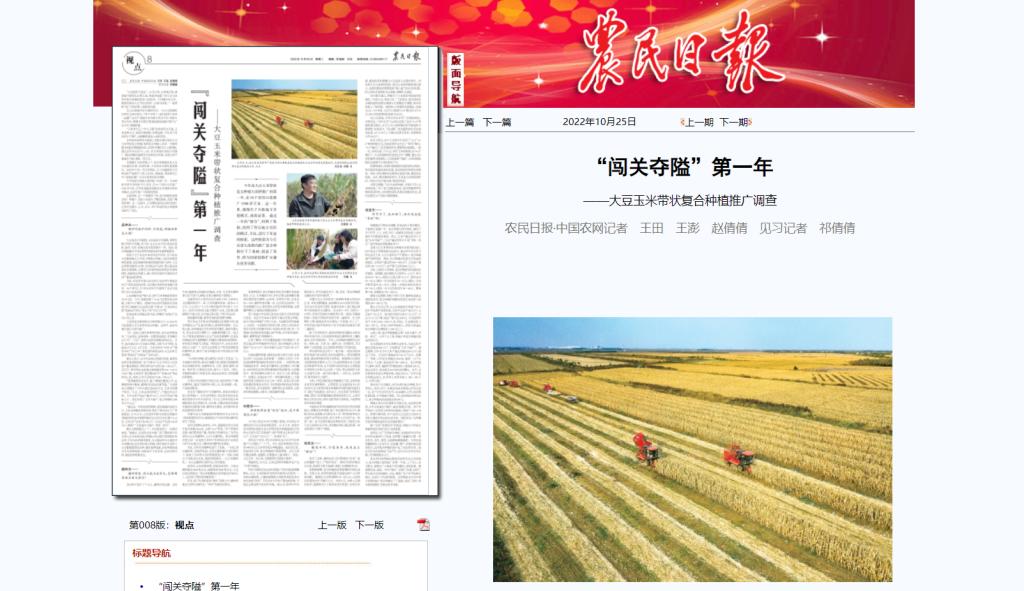 农业农村部种植业管理司油料处处长刘武表示,复合种植大面积推广的第一年里,上下齐心,各方配合,涌现出了大批地方首创模式,成效显著。最重要的是,通过一年的“磨合”,捋顺了机制,找到了符合地方实际的模式、方法,摸清了各个环节的难点痛点,也进行了有益的探索。这些探索为今后在更大范围内推广复合种植打下了基础、创造了条件,将为国家稳粮扩豆做出更多贡献。