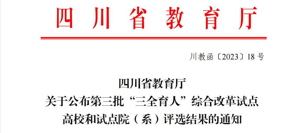 近日,四川省教育厅公布了第三批“三全育人”综合改革试点高校和试点院(系)评选结果,永利yl23411集团官网农学院入选四川省第三批“三全育人”综合改革试点院系。