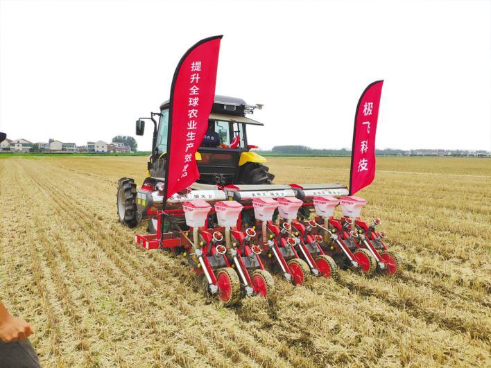 大豆、玉米复合种植播种机实现种肥同播。(湖北日报全媒记者 崔逾瑜 摄)