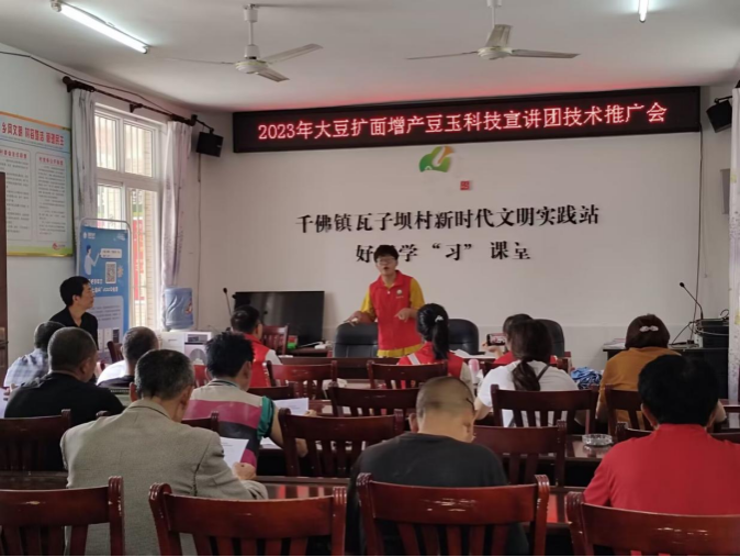图3 技术推广团成员为瓦子坝村各组长推广豆玉复合种植技术。王先童 摄