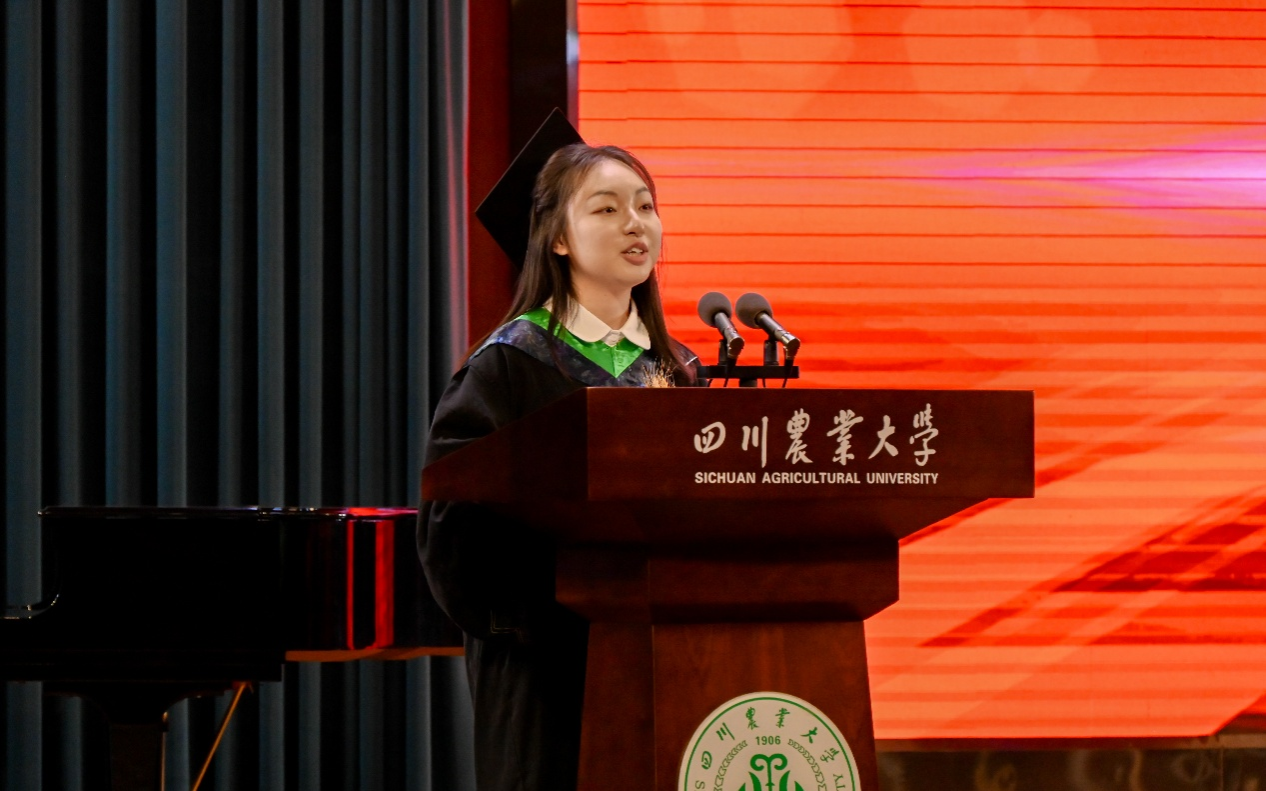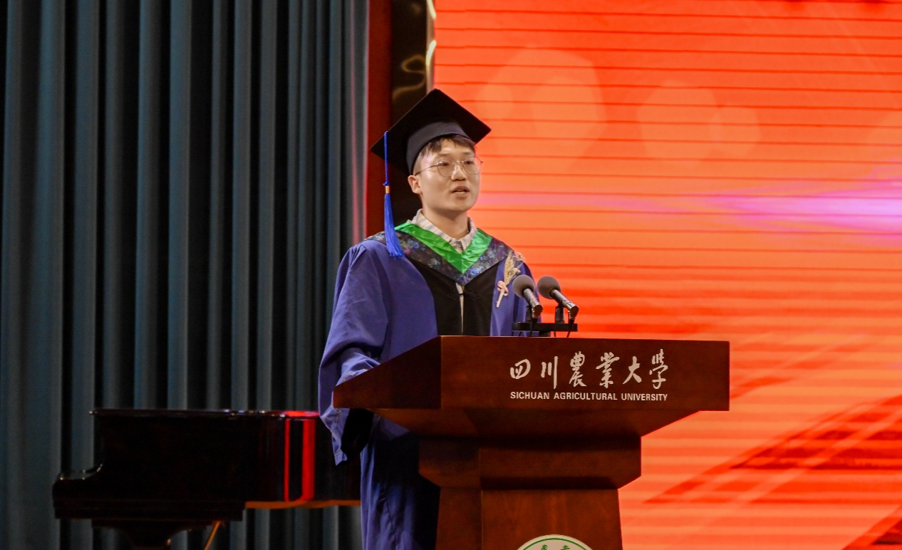 2025届研究生代表吴超回顾了在川农本硕七年的求学路,展望了续读本院博士的未来,秉承“追求真理、造福社会、自强不息”的校训,期待与同窗在乡村振兴的征程中,再聚奋进之路。