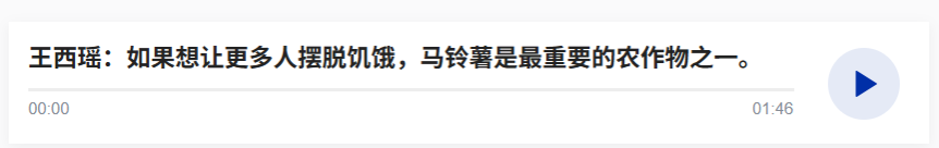 2023年12月,联合国大会决定将每年5月30日定为国际马铃薯日,旨在提高人们对马铃薯在营养、经济、环境和文化方面多重价值的认识。今年的5月30日,是第二个国际马铃薯日,主题为“塑造历史,丰泽未来”(Shaping history, feeding the future)。