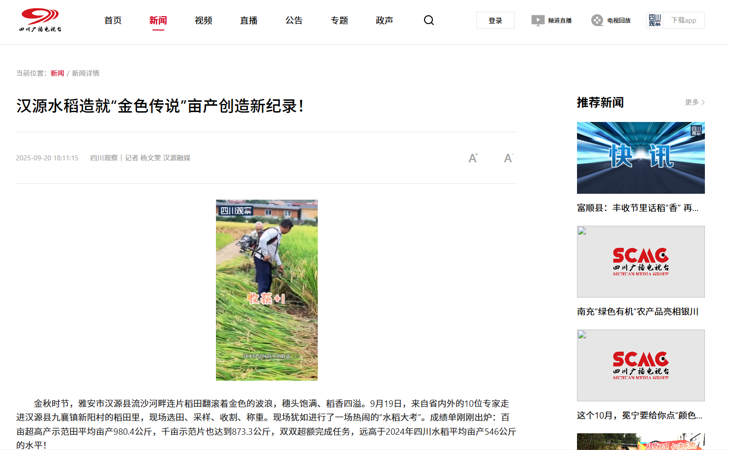 (四川观察)汉源水稻造就“金色传说”亩产创造新纪录!