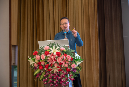 图为张江文对国光农化技术创新发展进行报告