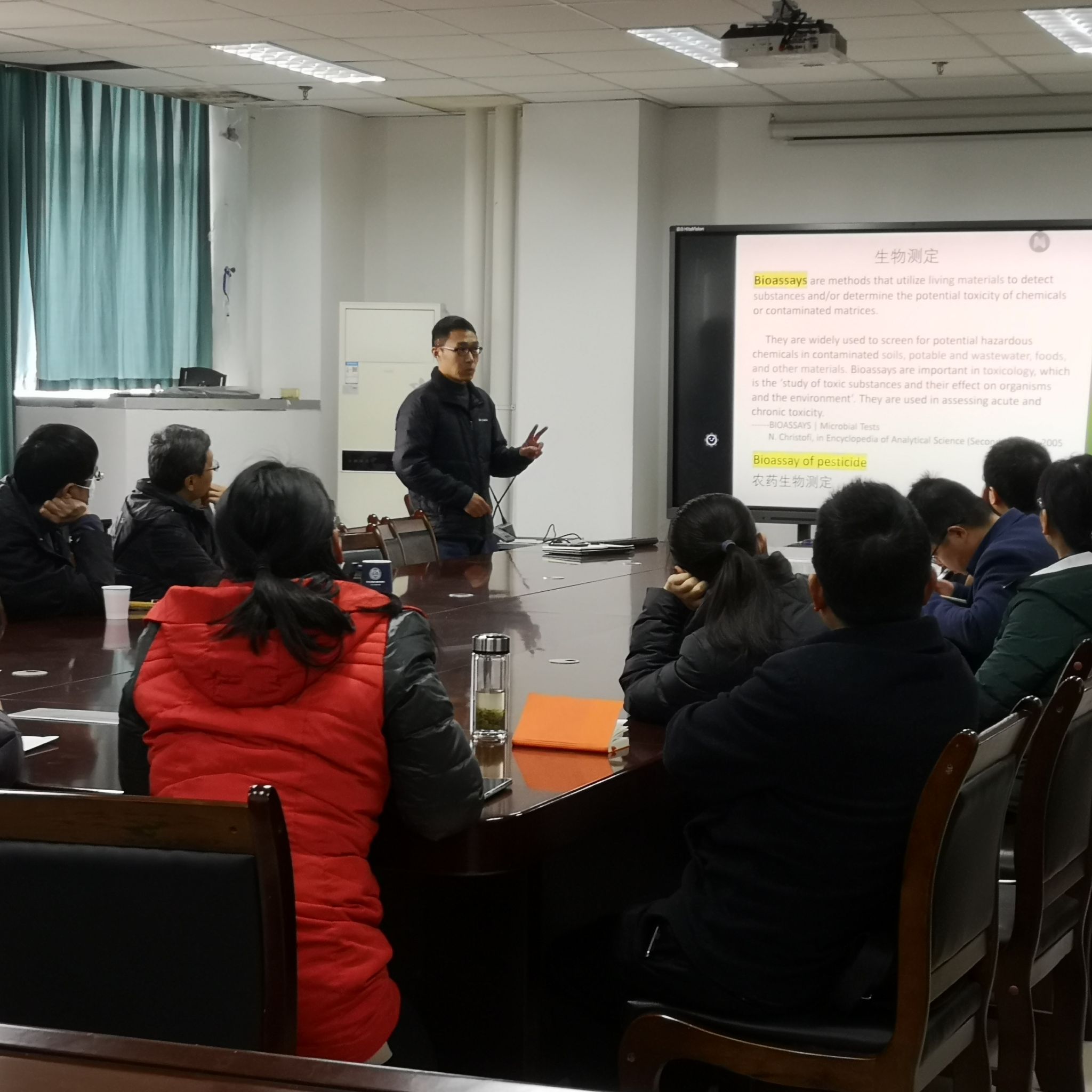 随后,植物保护系新进老师蒲建结合自身专业,就课程《农药生物测定》的绪论部分进行试讲。教学指导委员会议老师们分别就教学内容、教学方法、语言表达、课堂互动等环节进行点评和指导,肯定了蒲建老师的教学态度,指出了今后努力的方向,要求多向学院教学经验丰富的教师学习和交流,在课堂管理、换位思考、课堂气氛和师生互动等方面不断提升能力,谨记教师作为教育者的责任与使命。