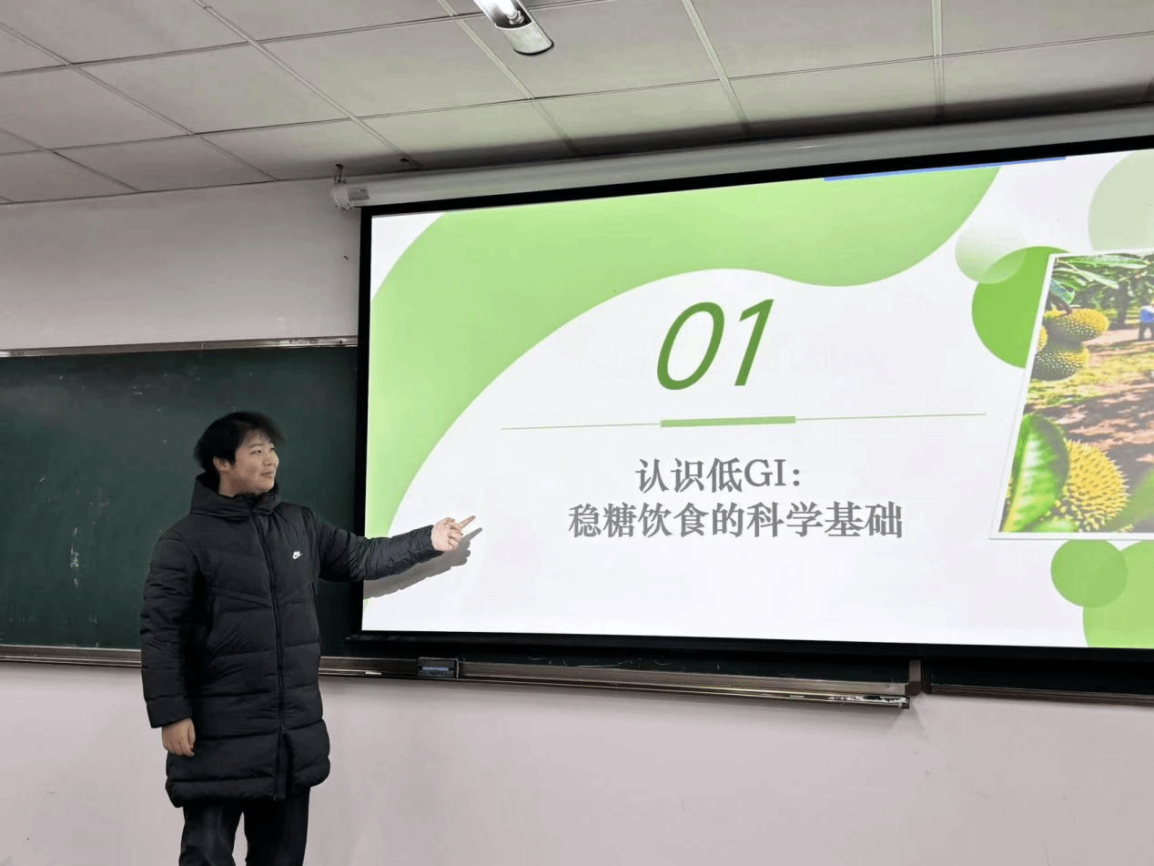 随后,团队举办低GI健康知识讲座,进行线下宣讲,通过图文讲解、案例分析、互动问答等形式,向大学生普及代谢性慢性病防控知识、低GI食品优势及彩色小麦营养价值,纠正“年轻无需关注血糖”的认知误区,传递科学健康的饮食理念。