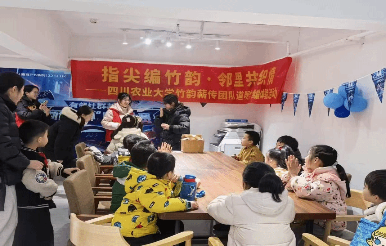 为积极响应国家“非遗在社区”工作号召,传承弘扬中华优秀传统文化,2026年寒假期间,永利yl23411集团官网农学院“竹韵新传”社会实践团队先后奔赴成都市温江区天府街道、宜宾市南溪区凤翔社区“童伴之家”,开展了以“指尖编竹韵·邻里共织情”为主题的道明竹编体验活动。团队将非遗技艺送入社区,让传统文化在孩童指尖焕发新生。