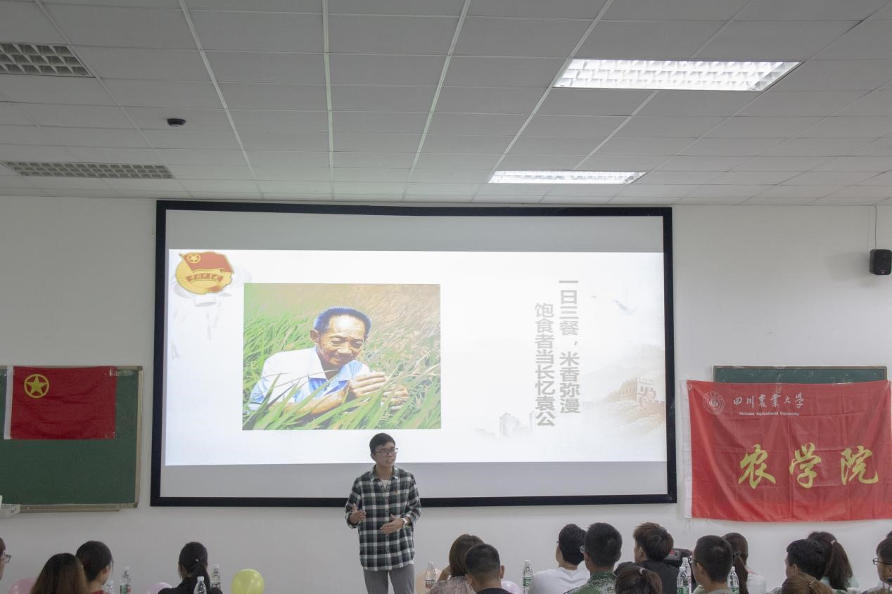 随后,“庆祝建党一百周年演讲比赛”中获得第一名的陈宇奇同学做了“我将青春献给党”的主题演讲。“一日三餐,米香弥漫。饱食者当长忆袁公”,演讲中,陈宇奇向同学们讲述了农业发展的兴衰历程,更号召农科学子以袁隆平老先生为榜样,肩负起农科学子的使命与担当。