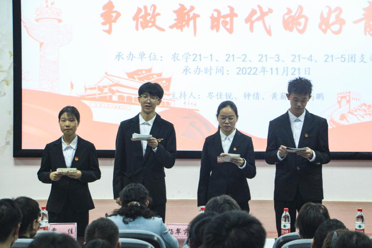 为深入学习党的二十大精神,引领广大青年争做有理想、敢担当、能吃苦、肯奋斗的新时代好青年,11月21日12点30,农学21-1、农学21-2、农学21-3、农学21-4、农学21-5五个支部联合举办主题为“学习党的二十大精神,争做新时代好青年”的示范性团日活动。农学202104班主任杨翠芹、农学202105班主任孔凡磊、感恩中国奖学金获得者杨杰、青马学员邓雅文、农学21级各班助班及全体支部成员参加了团日活动。