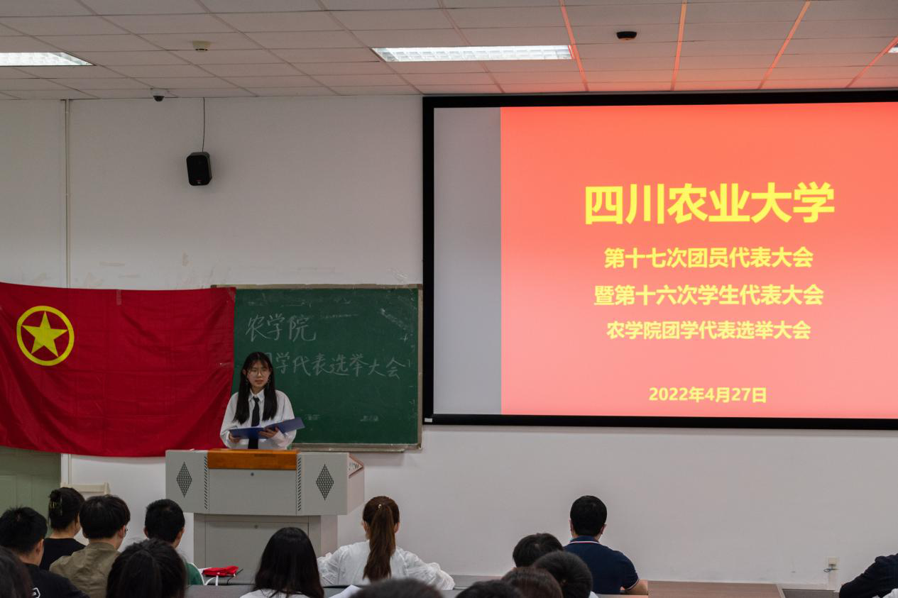 会上,主持人胡楠同学介绍了《关于永利yl23411集团官网第十七次团员代表大会暨第十六次学生代表大会代表选举的通知》(团学联发〔2022〕2号)文件相关内容,农学院团委贾佳老师向全体代表说明了学校第十七次团员代表大会暨第十六次学生代表大会农学院正式代表的选举方法及程序。