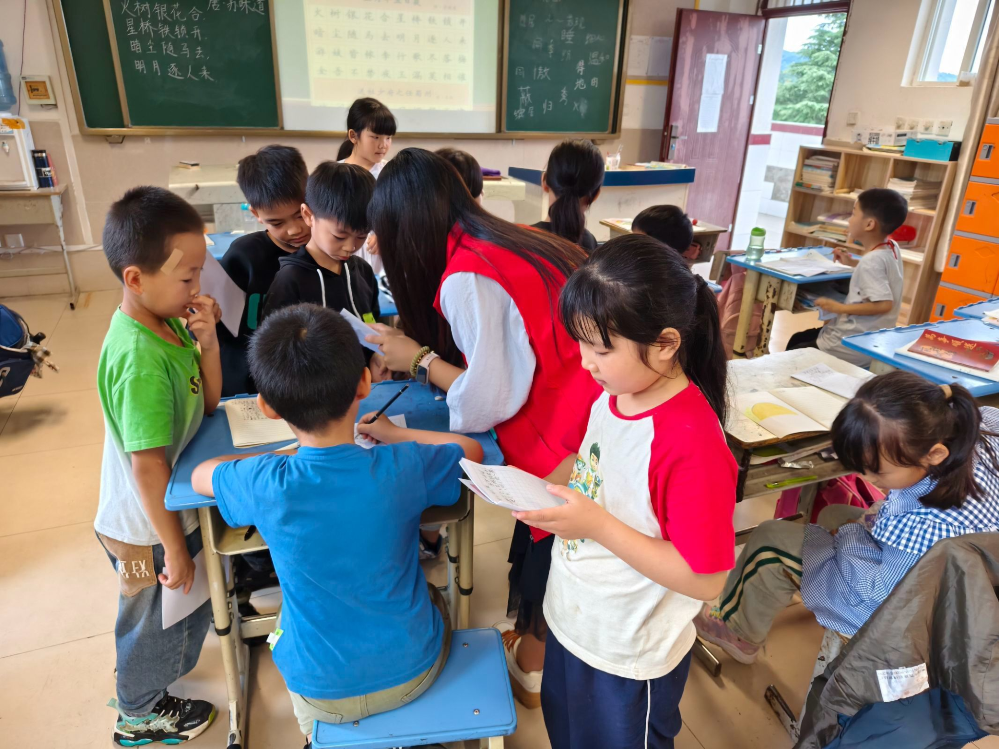 除了精心准备课程,团队成员们更是积极参与作业辅导。团队负责人之一徐开兵介绍到,“每天晚上都会安排作业时间,为了同学们的安全着想,教室外有成员巡视,避免孩子跑出。由两个成员答疑,一位成员组织纪律。每到夜晚,你就会看到小班孩子积极询问着问题,大班孩子大多内向,在座位上安安静静写着作业。”