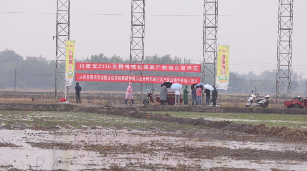 示范片水稻优质丰产高效绿色生产示范的主要栽培技术,来源于任万军教授团队“十三五”国家重点研发计划、“十四五”四川省育种攻关、农业重大技术协同推广等项目的研发和关键技术创新,集成了研发的“宜机插优质绿色品种筛选、齐苗壮根高效机械育秧、减穴稳苗健株省本机插、减量攻中养分运筹、基地追空机械化施肥”等关键栽培技术,以及由此形成的全国农业主体技术“杂交稻暗化催芽无纺布覆盖高效育秧技术”和四川省农业主推技术“优质杂交稻保优提质绿色高效栽培技术”,将为川康优2115等优质稻高产优质绿色生产和全程机械化管理提供坚实保障,发掘优质品种超高产的潜力,推动优质高效品种更新换代。任万军教授表示,团队长期将研发与推广结合,推动稻作“高产优质高效生产、经营主体高质生活、稻作农田优质生态”的“三生一体”发展。