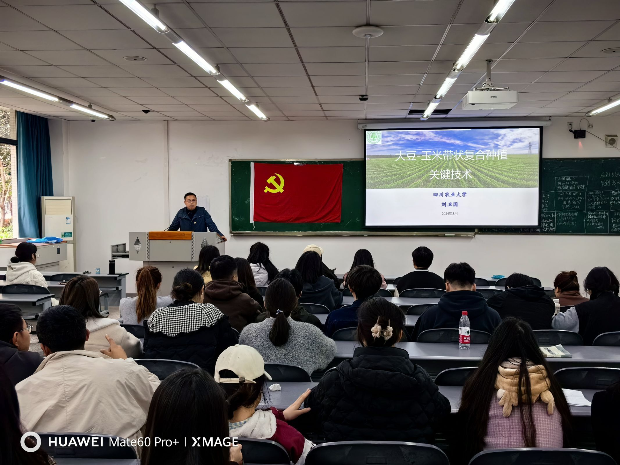最后,支部书记刘卫国老师从进行大豆玉米带状复合种植播种密度、栽培方式、株距行距、合理施肥、病虫害防治以及收获测产等关键环节进行了技术培训。