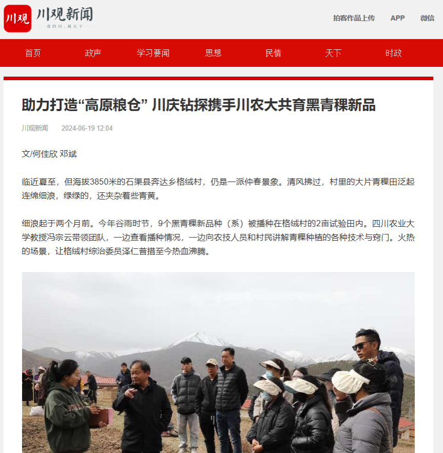 (川观新闻)助力打造“高原粮仓” 川庆钻探携手川农大共育黑青稞新品